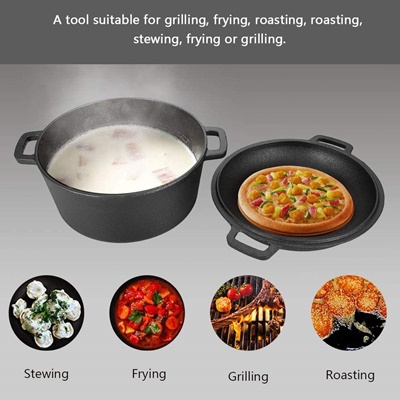 | 5-quart heavy duty cast iron dutch oven and casserole with a lid that doubles down as a skillet