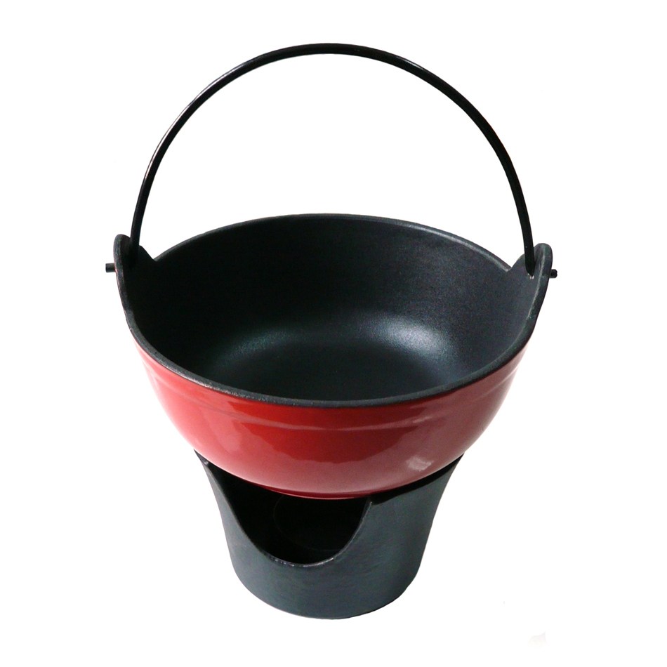 cast iron fondue set with lid and handles base