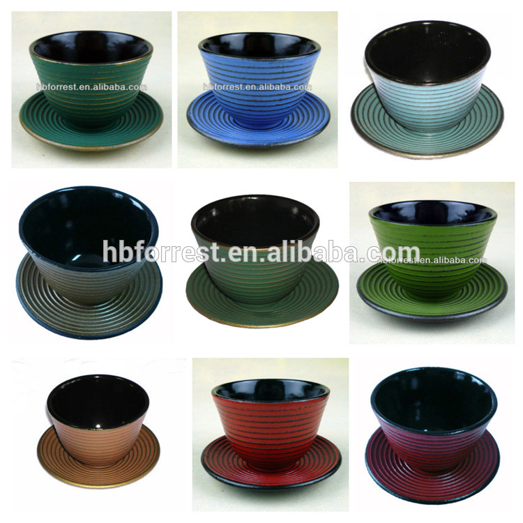 made from cast iron ,and matches with cast iron teapot (tetsubin teapot ),their capacity and shape is perfect for showing tea’s soul ,so it is the favorite of a tea drinker.and the cast iron can even the temprature .give you more time to enjoy it.